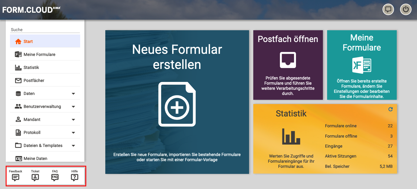 You can access the following support options in the Xima® Formcloud.