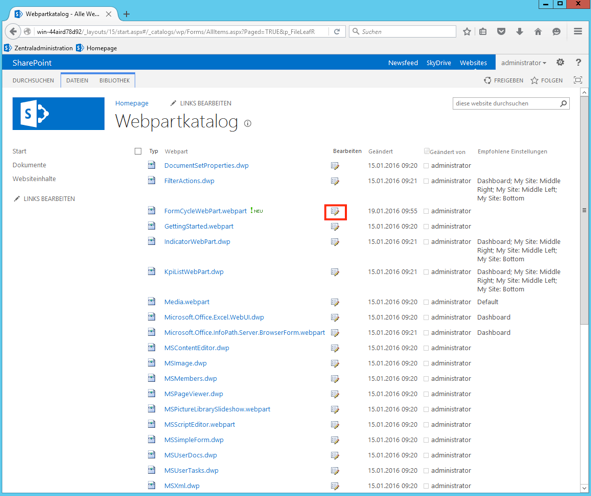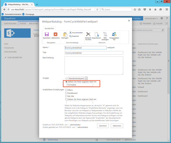 - Select FormCycle.FormCycleWebPart.FormCycleWebPart and click on Populate gallery.