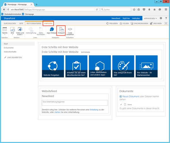 - Go to the document to which you would like to add a Xima® Formcycle form, and click on Edit Insert Web part.