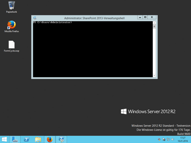 - When you are installing the plugin for the first time, run the command Add-SPSolution C:\Users\Administrator\Desktop\FormCycle.wsp. When installing an update of the plugin FormCycle.wsp, run the command run Update-SPSolution -Identity FormCycle.wsp -LiteralPath "C:\Users\Administrator\Desktop\FormCycle.wsp" -GacDeployment.