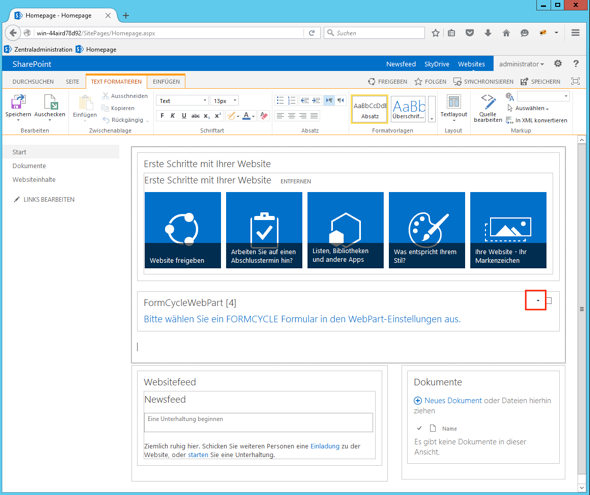 - Go to the document to which you have added Xima® Formcycle and open the web part settings.
