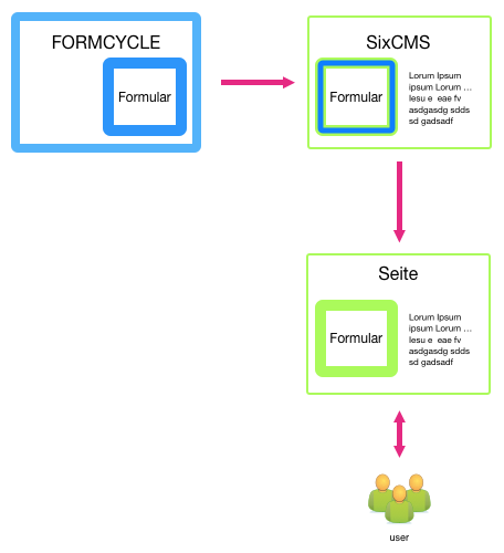 Das Formular wird als DIV Content in die Seite gerendert (Siehe Abbildung Zugriff 1).