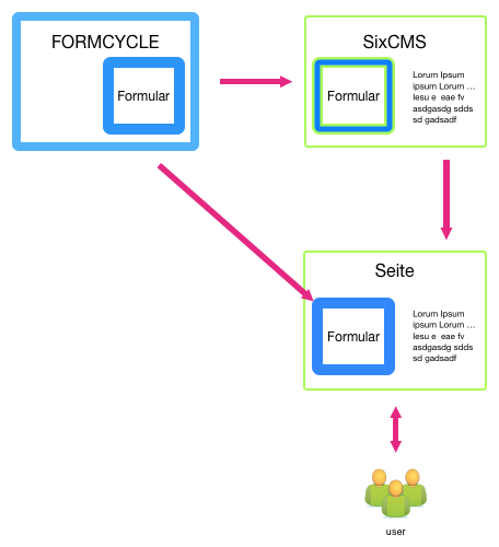Das Formular wird über einen Ajax-Request in die Seite (DIV) geladen (Siehe Abbildung Zugriff 2).