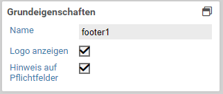 Die Fußzeile wird immer unten am Formular angezeigt, unterhalb der aktuellen Seite. Standardmäßig wird hier der Hinweis auf Pflichtfelder und ein eventuell ein Logo angezeigt. Jedes Formular kann höchstens eine Fußzeile besitzen.