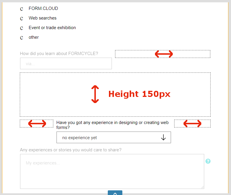 The form element spacer inserts a spacer in the current form and is a pure design element. It can be used to add gaps between elements.