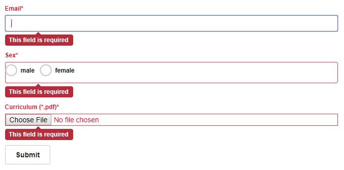 | Modern theme | When checked, applies some default styles that make the form look more modern. Checkboxes and radio buttons are rendered with custom icons. |