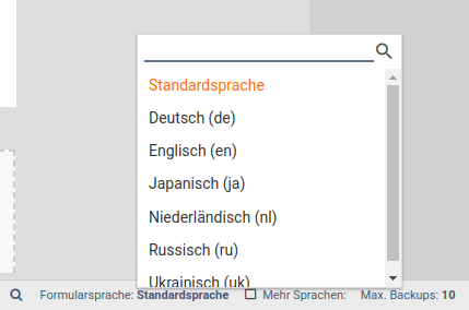 Über die Internationalisierung kann das Formular mehrsprachig aufgebaut werden. Die Auswahl der Sprache findet sich ganz rechts unten im Xima® Formcycle-Designer rechts neben dem Suchsymbol.