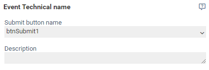 - Selection of the submit button in the form which must be pressed to trigger this event. There is also the possibility to select All submit buttons, which will trigger this event as soon as a submit button is pressed in the form.