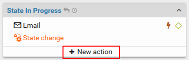 Actions provide certain services or functions such as sending mails or writing an entry to a data base. They can be created by clicking the "New action" button inside a state.