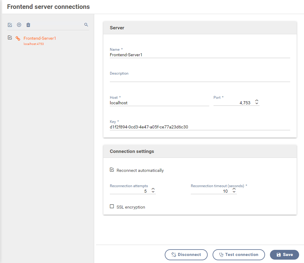 Now the system can connect to the frontend server. To use it with a form, you first need to allow the client of that form access to the frontend server.
