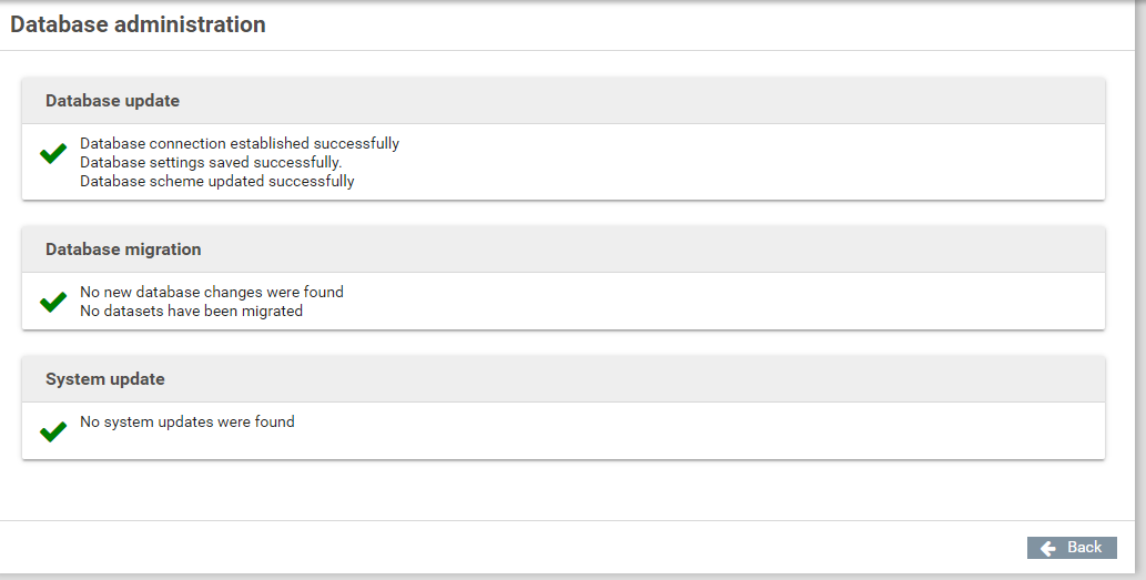 - After signing in as system administrator (sadmin), you will be redirected to the database administration page. Here the settings should be checked again.