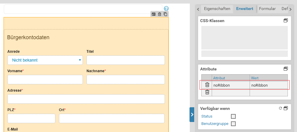 Um den Login für einen oder mehrere Bürgerservices über einen Externen Benutzer am jeweiligen Formular zu ermöglichen, muss dies als Formularanmeldung am Formular hinterlegt sein.