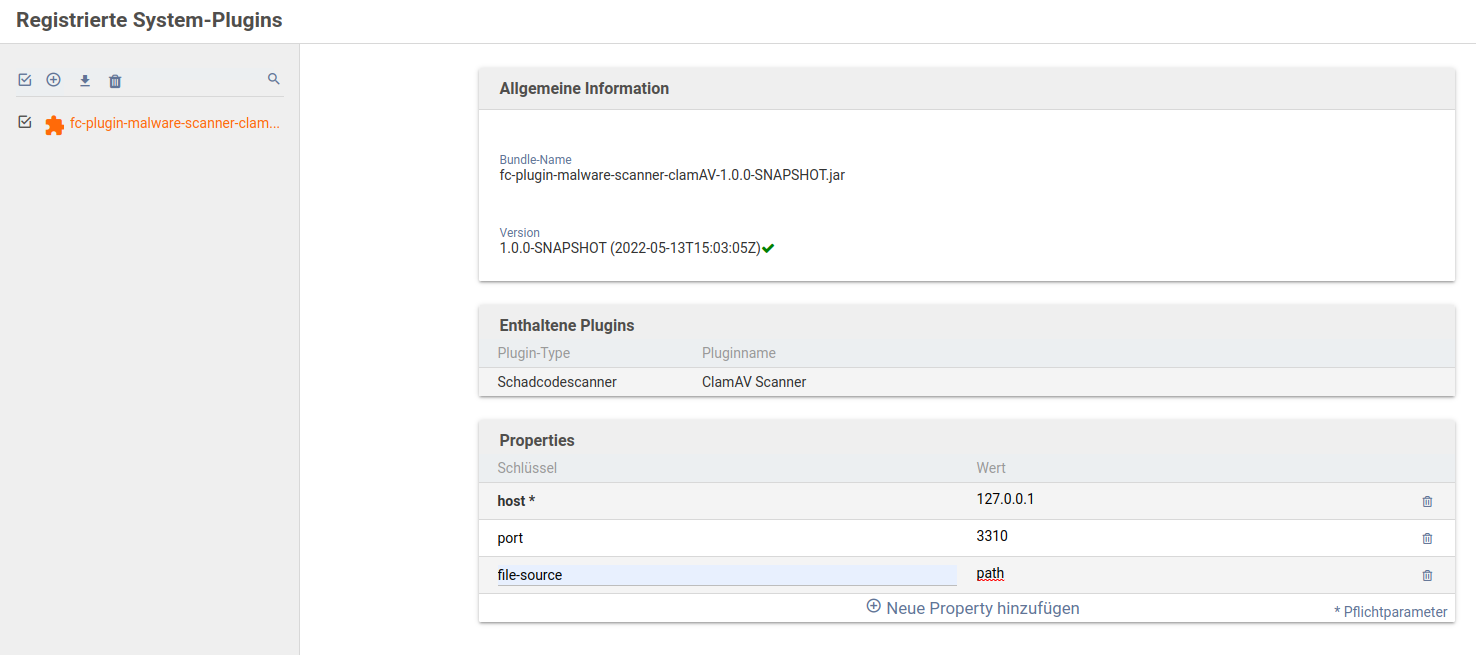 Das ClamAV-Plugin scannt Dateien in Backend und Fronted. Es steht somit immer allen Benutzern zur Verfügung. Daher ist es anzuraten, das Plugin als System-Plugin zu installieren. Dies umgeht auch mögliche Probleme mit doppelt belegten Ports und ermöglicht eine zenztrale konfiguration.