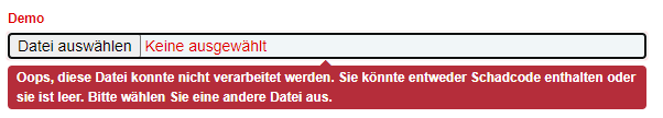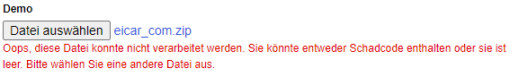 Standard Upload-Element nach dem Absenden einer Virusdatei: