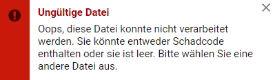 Fehlermeldung im Backend von Xima® Formcycle nach dem Versuch eine Virusdatei hochzuladen.: