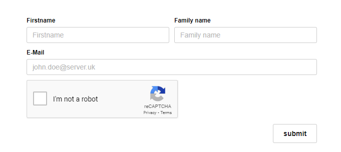 The plugin provides a new widget in the designer, which allows to insert a Google reCaptcha in the form that the user must fill in correctly before submitting the form. The Google reCaptcha widget can be placed in any number of positions in the form.
