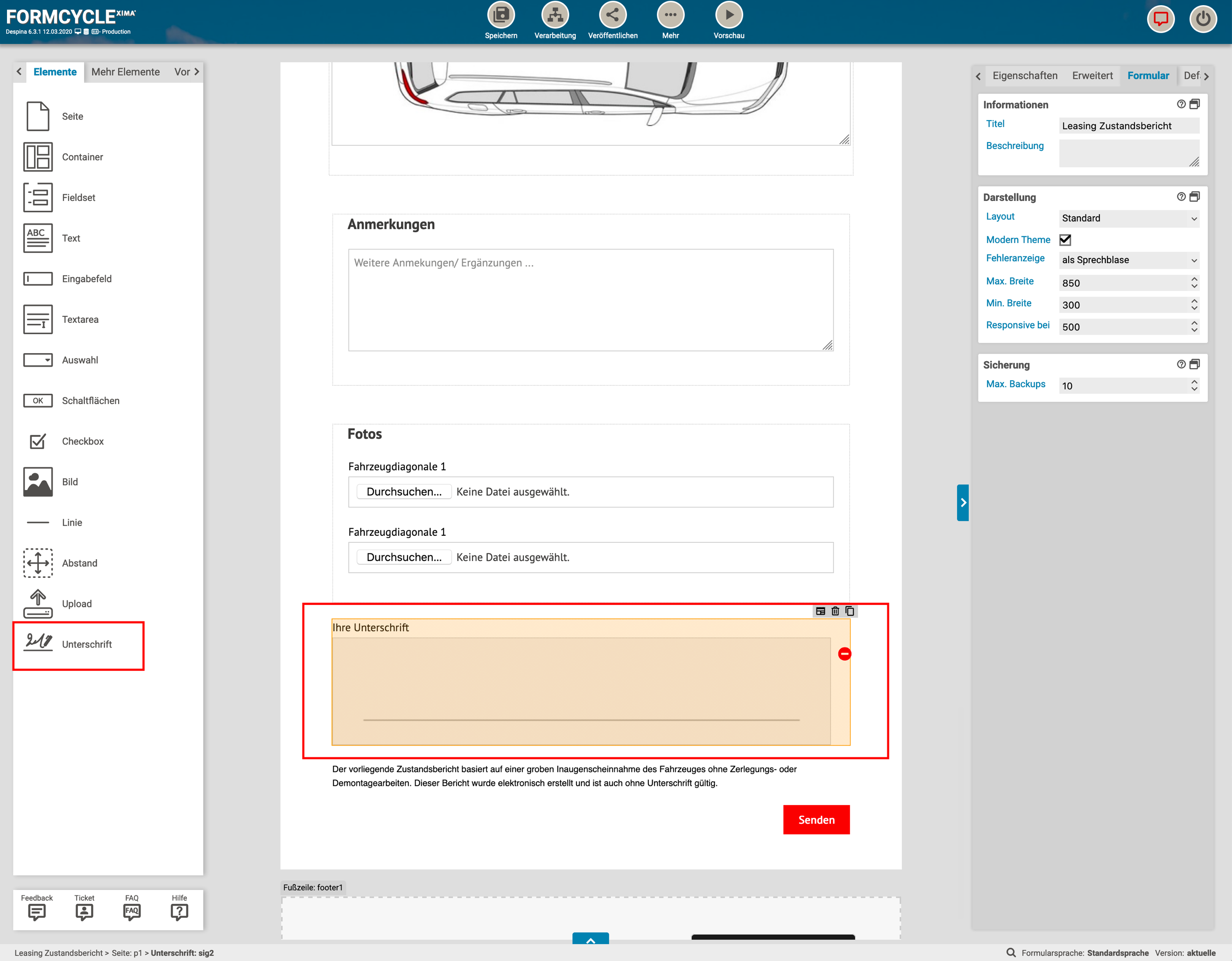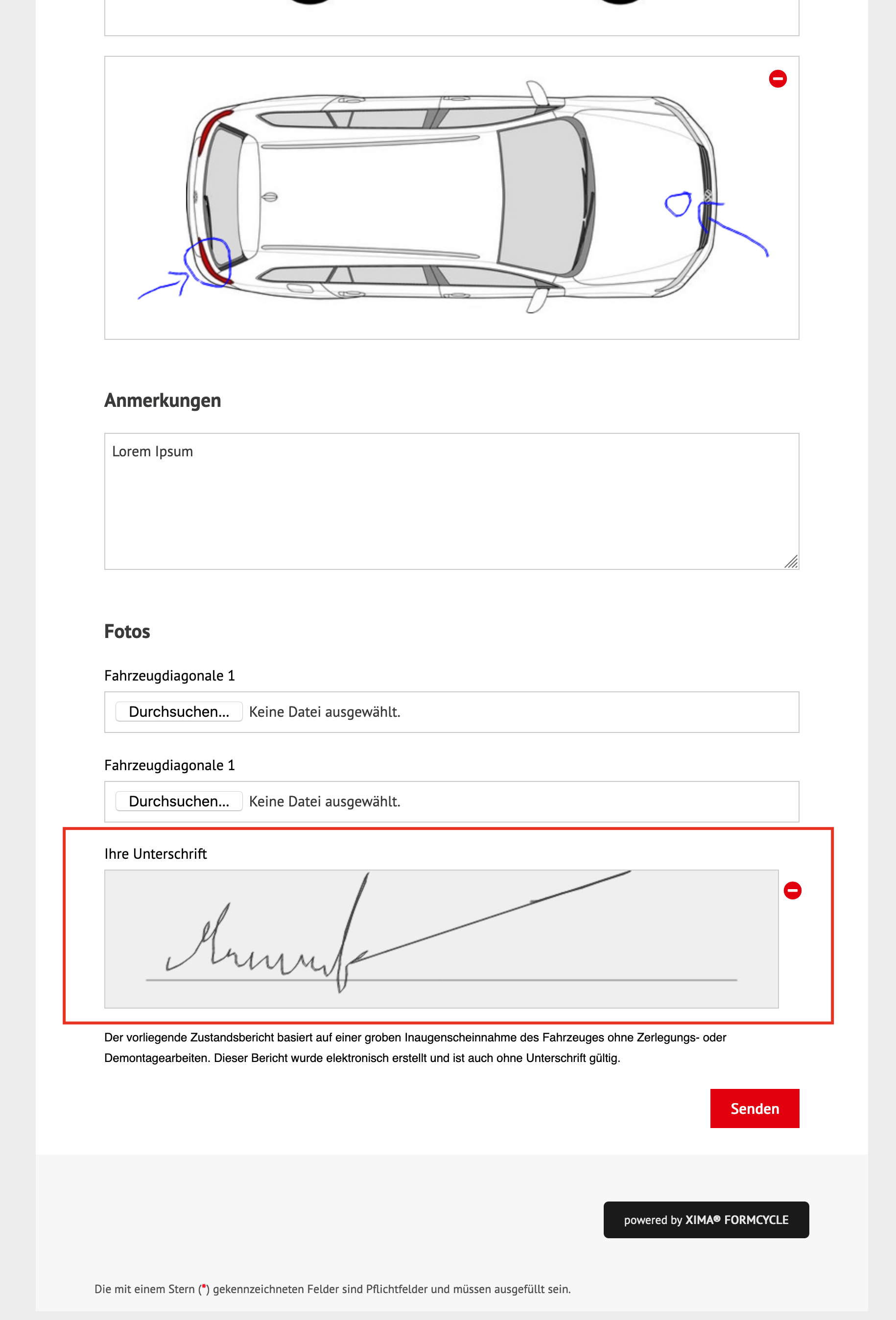 Besonders in Verbindung mit einem Touch-Bildschirm oder mit elektronischer Stifteingabe bietet sich die Verwendung dieses Elements an. Das Element erzeugt nach dem Zeichnen eine Bilddatei, welche als Base64 codierter Text mit dem Formular an den Server abgesendet wird.