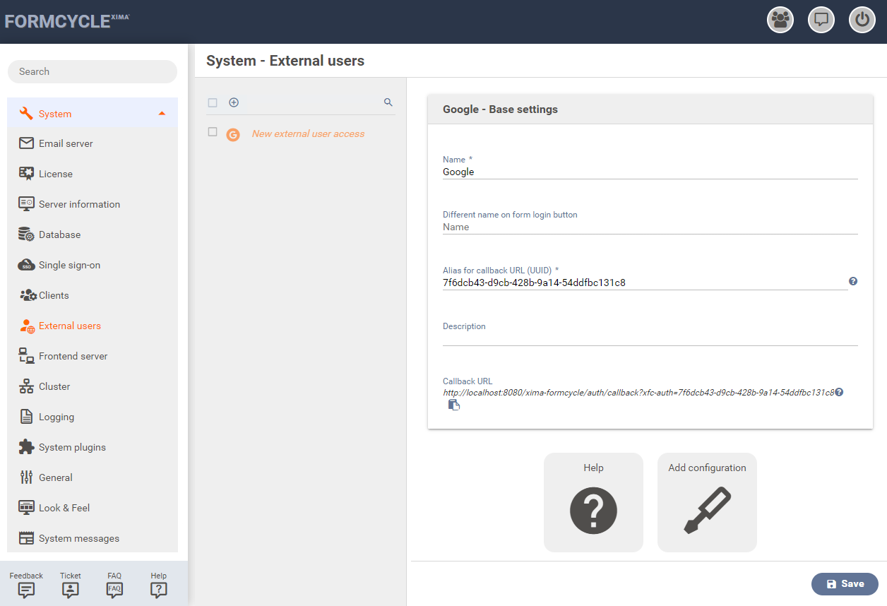 Unique identifier that is used when the identity provider returns to Xima® Formcycle. This value is generated automatically, but can be changed if necessary.