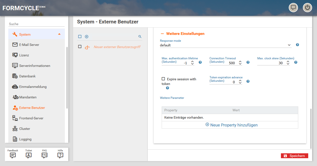 Zeitspanne, die eine Xima® Formcycle-Anmeldung vor dem Identity Provider Token ablaufen soll. Standardwert ist 0 Sekunden.