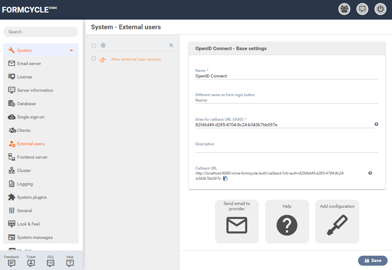 Unique identifier that is used when the identity provider returns to Xima® Formcycle. This value is generated automatically, but can be changed if necessary.