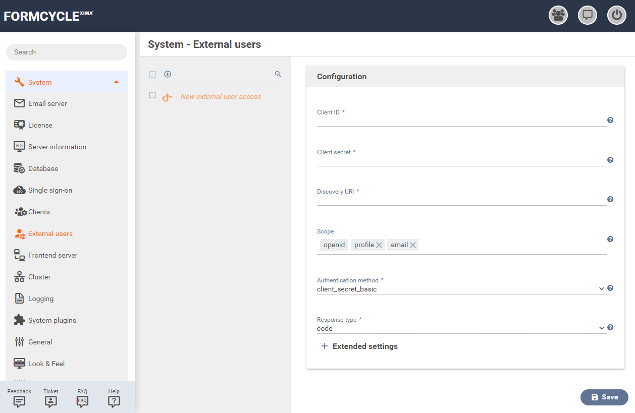 By clicking on Extended settings additional parameters for the connection with the identity provider can be configured.