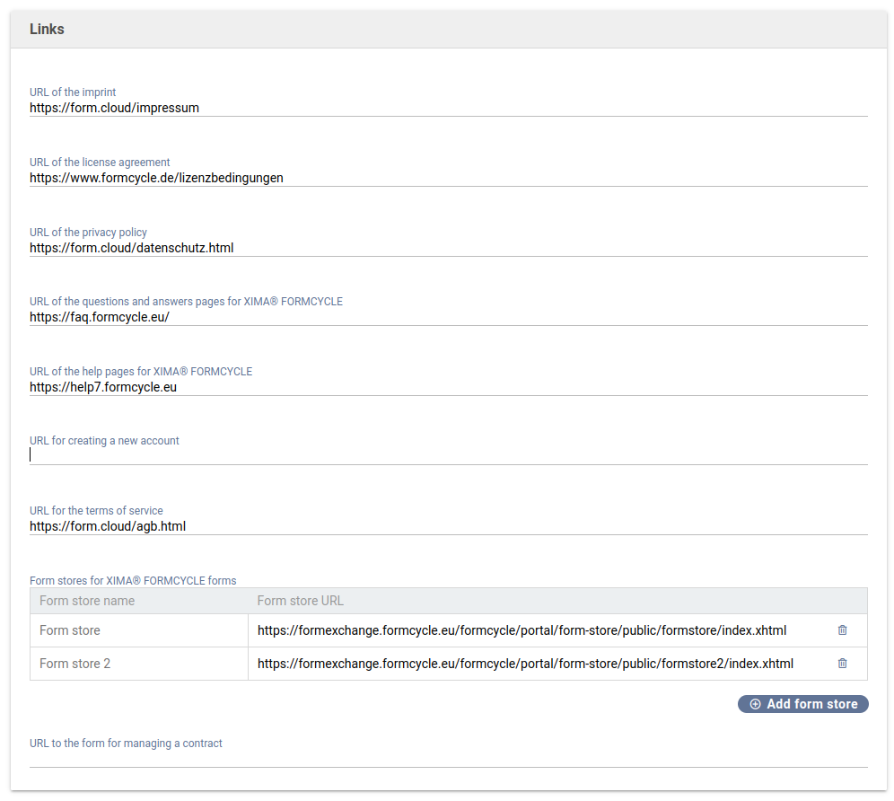 - Since version 7.0.11 you can set enter more than one URL. For each URL, a panel is shown on the form overview page when creating a new form.