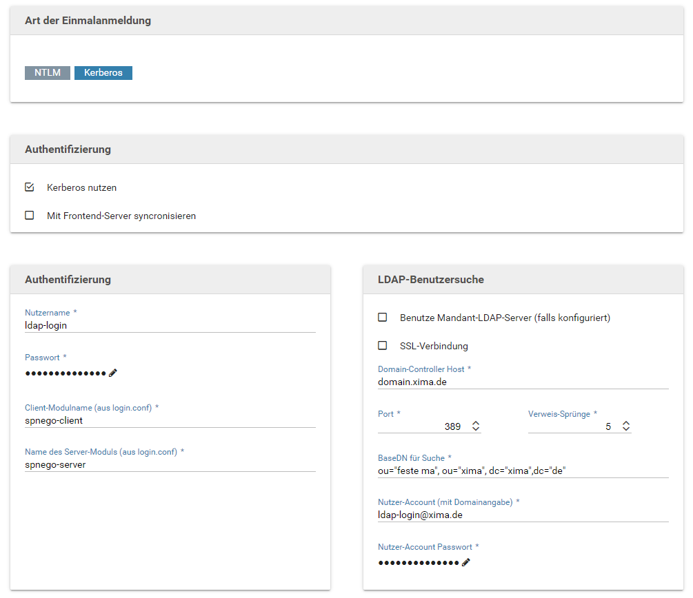 Die folgenden Einstellungen sind für eine Nutzersuche nach erfolgter Ntlm-Authentifizierung notwendig: