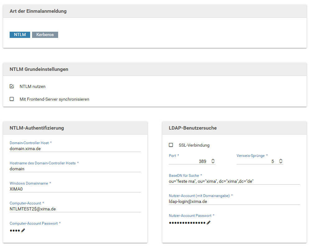 Die folgenden Einstellungen sind für die Authentifizierung eines Benutzers mittels Ntlm notwendig: