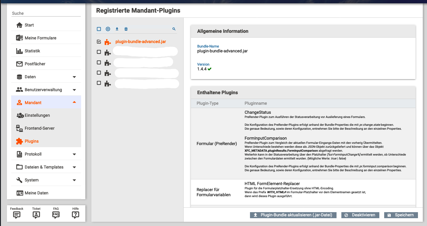 Die Mandant-Pluginverwaltung ermöglicht es, im entsprechenden Mandanten eigene Logik einzubinden.