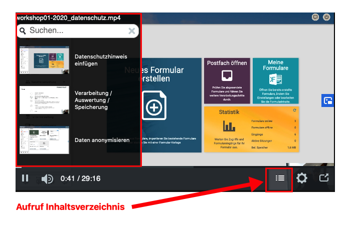 Hier finden Sie Videos und Informationen zu den verschiedenen Themen-Workshops. Für eine schnelle Navigation innerhalb der Videos kann jederzeit ein Inhaltsverzeichnis eingeblendet werden.